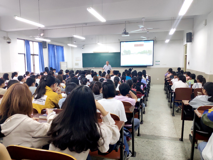 钟能政长期担任安徽省教育科学研究院教研员,主要负责教育教学研究、教学教改应用,指导各地生物教育科学研究和教学改革实验工作。面对大一的懵懂学生,钟老师结合自己丰富的生活和学习经验,运用简练的语言艺术,向大家讲述了做好大学四年人生规划的重要性。针对今后如何成为一名合格的中学生物教师,钟老师从三个方面进行了概括:首先是动力,要积极通过尝试和体验找到自己的兴趣所在,并为之准备;其次是做好知识储备,包括人文与社会知识、学科知识、学科教学知识和教育情境知识,除了认真学习专业知识外,钟先生还根据学生实际,推荐了适合学生的书籍;第三是能力,作为中学生物教师,要具备表达能力、组织能力、学科教学研究能力和学科教学能力,这些能力需要通过不断训练——体验——领悟来进行培养。最后钟老师与同学们进行了交流和互动,悉心回答了学生们提出的问题。