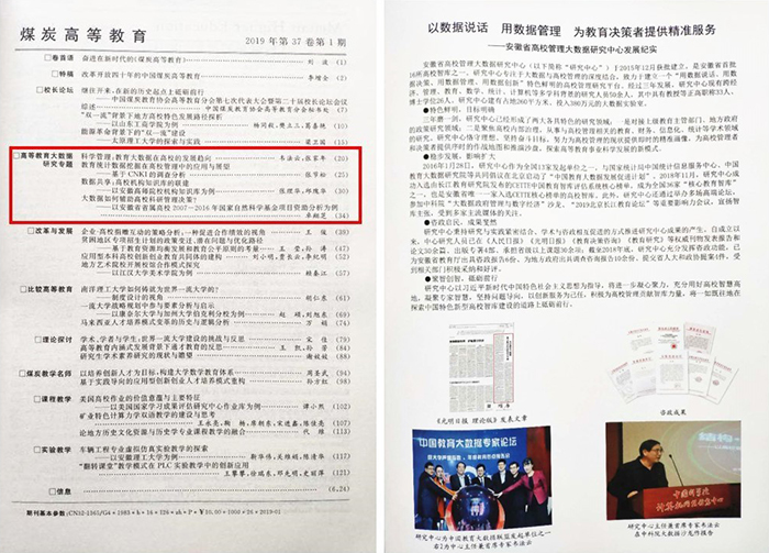 本着“共同深入挖掘和培育原煤炭行业院校高等教育成果、成果传播和作者培养等方面合作”的共识,中国矿业大学《煤炭高等教育》2019年改版后的第一期,重力推出我校智库——安徽省高校管理大数据研究中心系列成果。