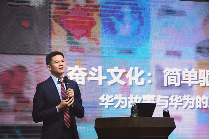 周明成以“奋斗文化:简单驱逐复杂”为主题,向在场师生分享了华为故事及其个人的成长经历。他希望同学们做一个简单的奋斗者去实现人生价值。他提到:“华为,是由一位位小人物创造出来的大历史。以后的路还很长,同学们机会还很多。”此外,他向同学们分享了华为成长的各个阶段、华为公司的企业文化以及华为公司的成长等。周明成通过自身在华为的经历,向同学们娓娓道来如何做好企业,如何追逐价值,如何打开眼界,同学们更直观认识到企业成长的不易,奋斗的重要性。