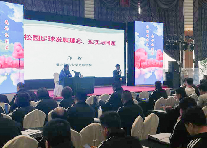 2019年4月23日上午,由全国青少年校园足球工作领导小组办公室主办、中国教育科学研究院承办、吉林体育学院协办的全国青少年校园足球师资国家级专项培训—管理干部(校长)培训在长春中日友好会馆开班,200余名中小学校长及管理干部参加。我院郑贺教授应邀给全体学员作了“校园足球发展理念、现实与问题”的报告。