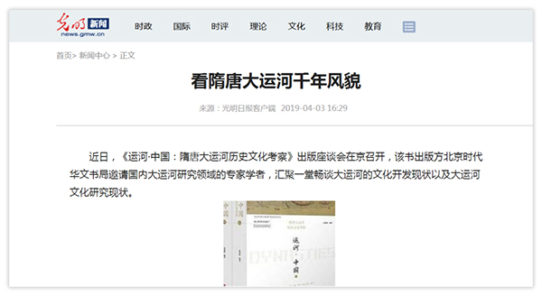 近日,《运河·中国:隋唐大运河历史文化考察》出版座谈会在北京时代华文书局举行。《光明日报》对座谈会进行报道。