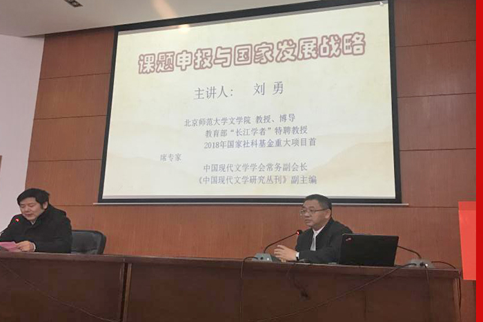 应校科学研究部邀请,北京师范大学二级教授、博士生导师刘勇在2019年12月20、21日逸夫楼300为我校师生作了题为“课题申报与国家发展战略”和“文学经典的多重对话”的学术报告。