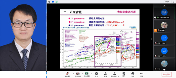 2020年 6月21日,应物理与电子信息学院邀请,香港大学博士后王勇在腾讯会议为学院师生作了一场题为《CsPbI3全无机钙钛矿太阳能电池》的学术报告。报告会由系主任李强老师主持,物理与电子信息学院的教师、研究生和本科生共200余人聆听了学术报告,活动最后相关研究老师和王勇博士围绕钙钛矿太阳能电池做了交流。